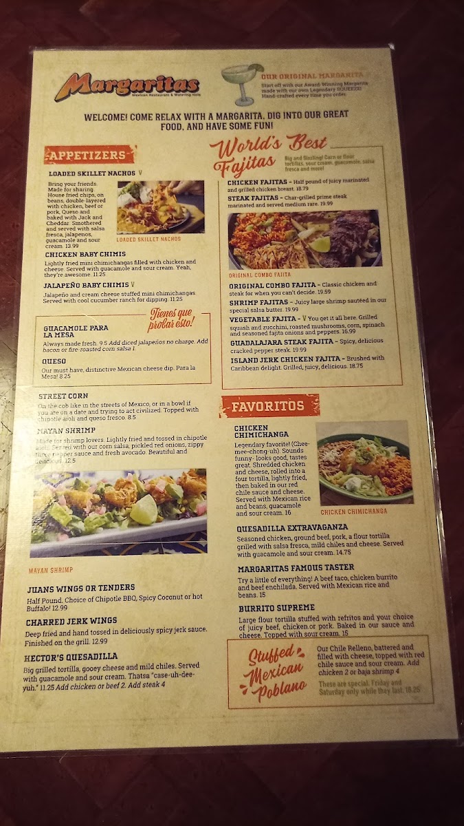 The menu features the World's Best Fajitas, showcasing juicy cuts like the Guadalajara Steak and Island Jerk Chicken, all grilled to perfection. Vegetarian options, such as the Roasted Vegetable Zarape, offer delightful flavors for every palate. Customers rave about the enchiladas—considered the best in town—alongside refreshing margaritas crafted by skilled bartenders.